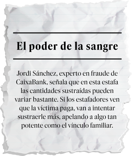 Todo empieza con un envío indiscriminado. Los estafadores emiten el primer mensaje que contiene el “hola, mamá/ papá, necesito un favor” a todos los números de teléfono de una base de datos que han recopilado o que han comprado en la web oscura, una zona oculta de internet no indexada por los buscadores convencionales a la que se accede a través de un navegador específico. Por una cuestión estadística, explica Jordi Sánchez, experto en fraude de CaixaBank, si se envía el mensaje a 500.000 personas, con que respondan 50 es más que probable que unas cuantas den por cierto el mensaje de ayuda.